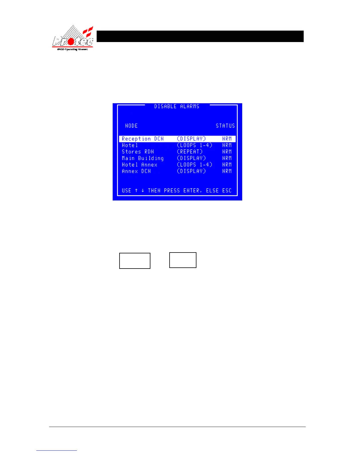 • Disable Alarm O/Ps : To disable the alarm outputs on a node, use the arrow keys to select a node then press the