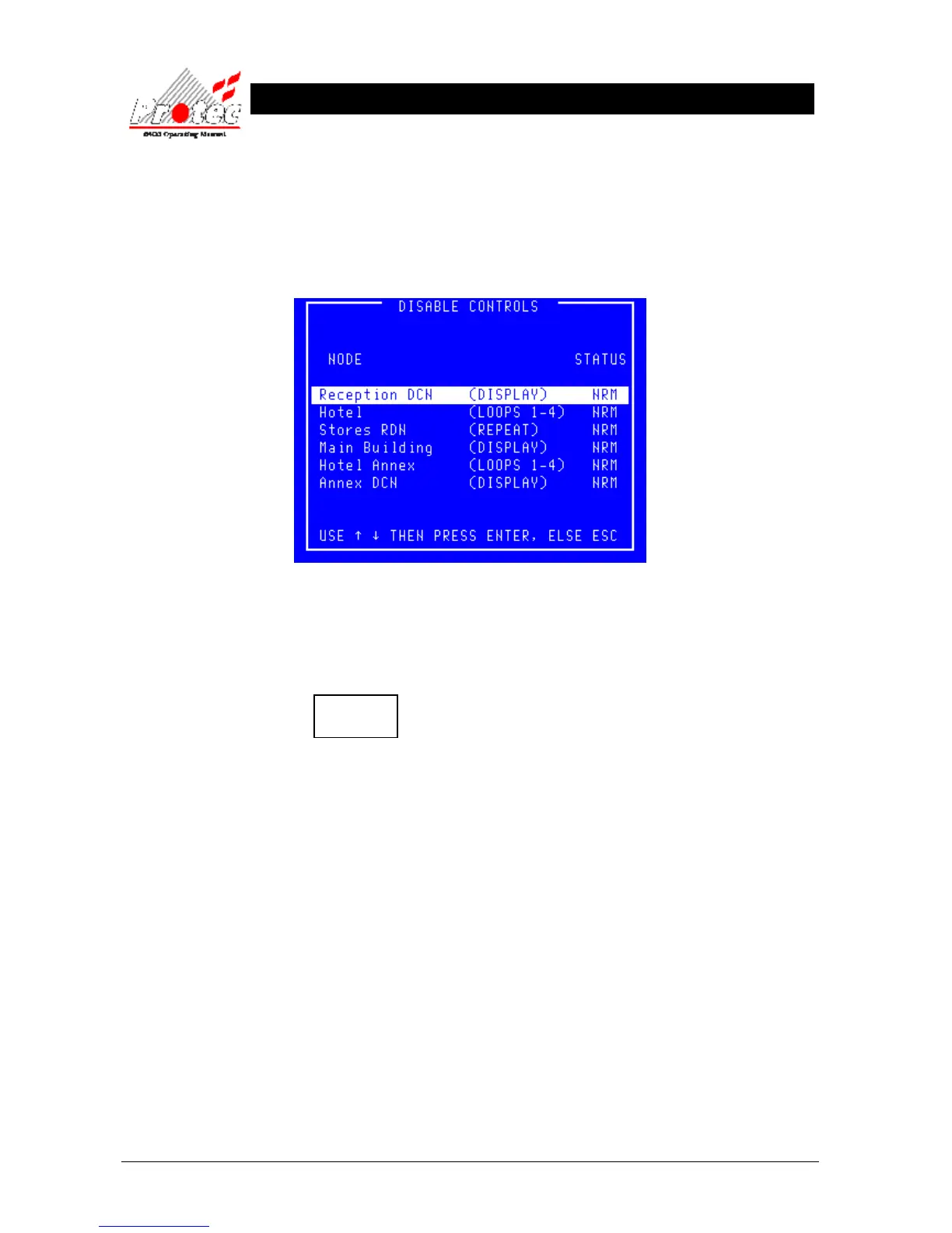 The status for the selected node will change to ‘NRM’. The ‘Disablement’ LED will be