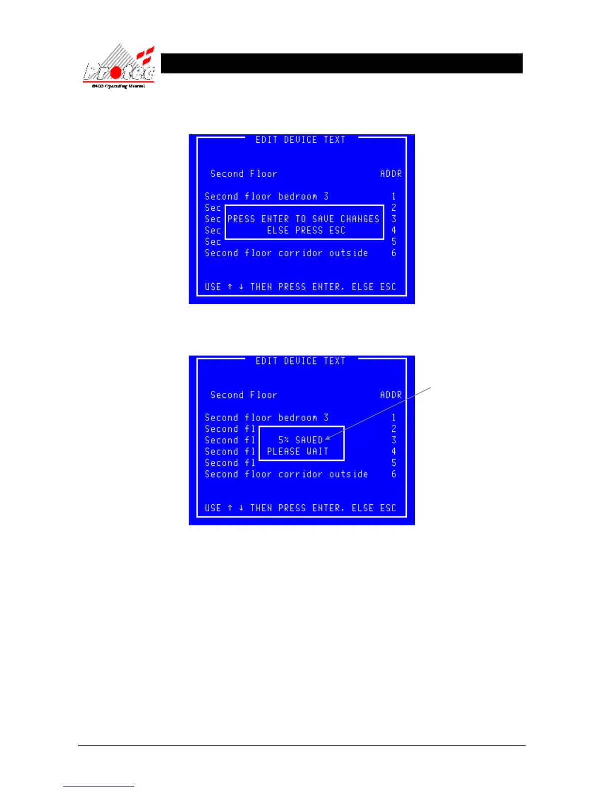 • Saving Data : Press the ENTER Key to save the above changes to memory. The display will show :-