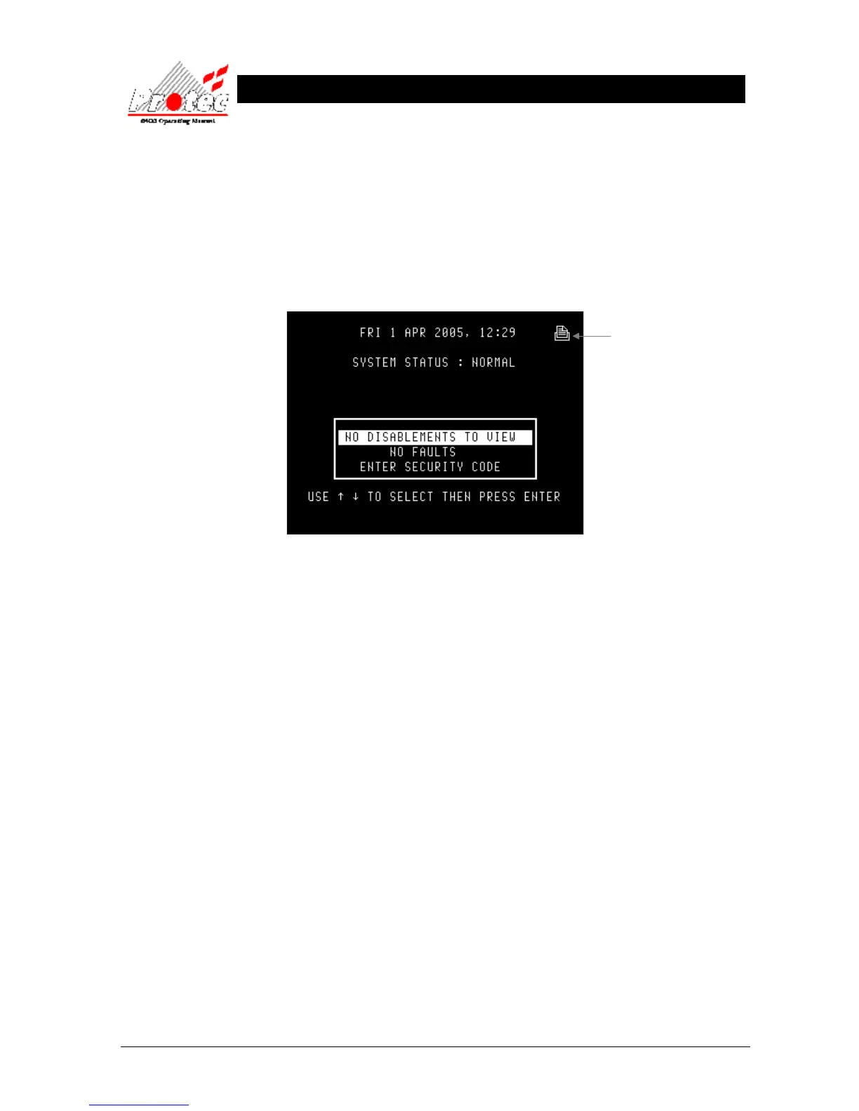 Logo : If there are no faults or disablements present then the box and highlight bar shown above