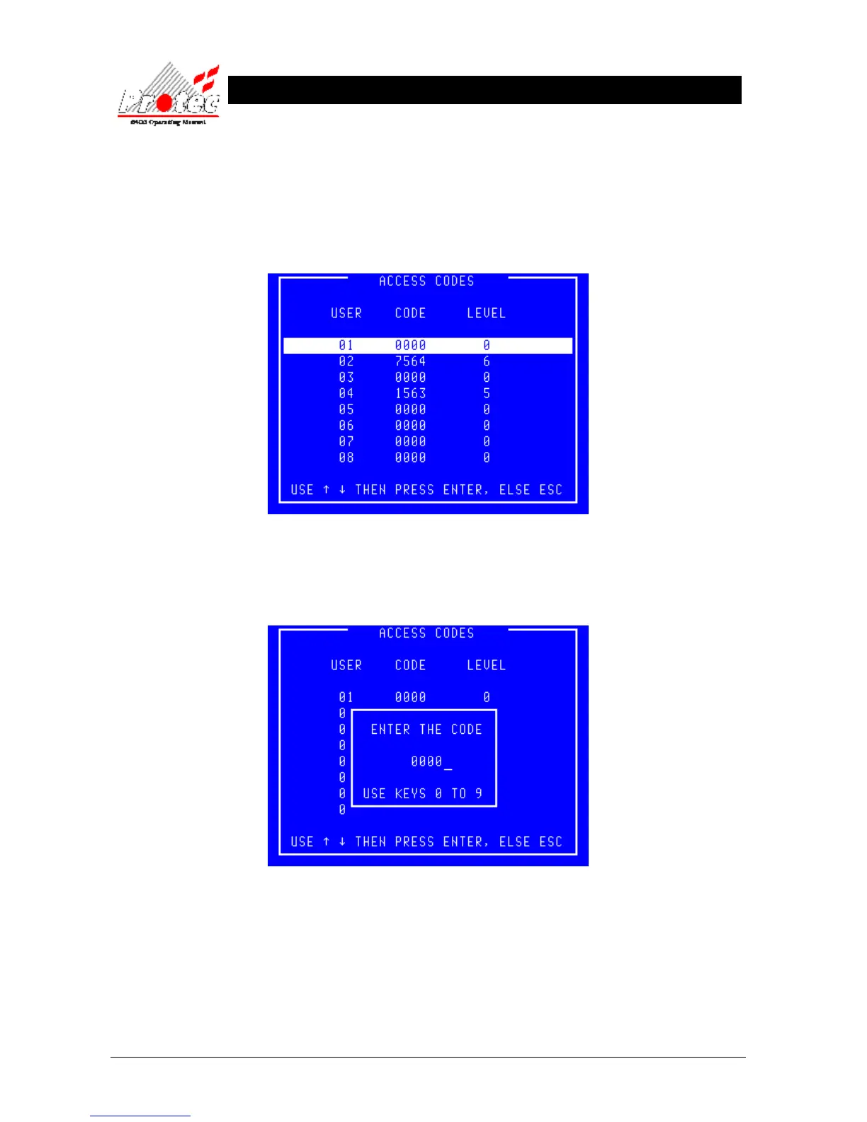 • Exiting option : To EXIT the ‘User Codes’ menu and return to the ‘Main menu’ press the ‘ESC’ key.