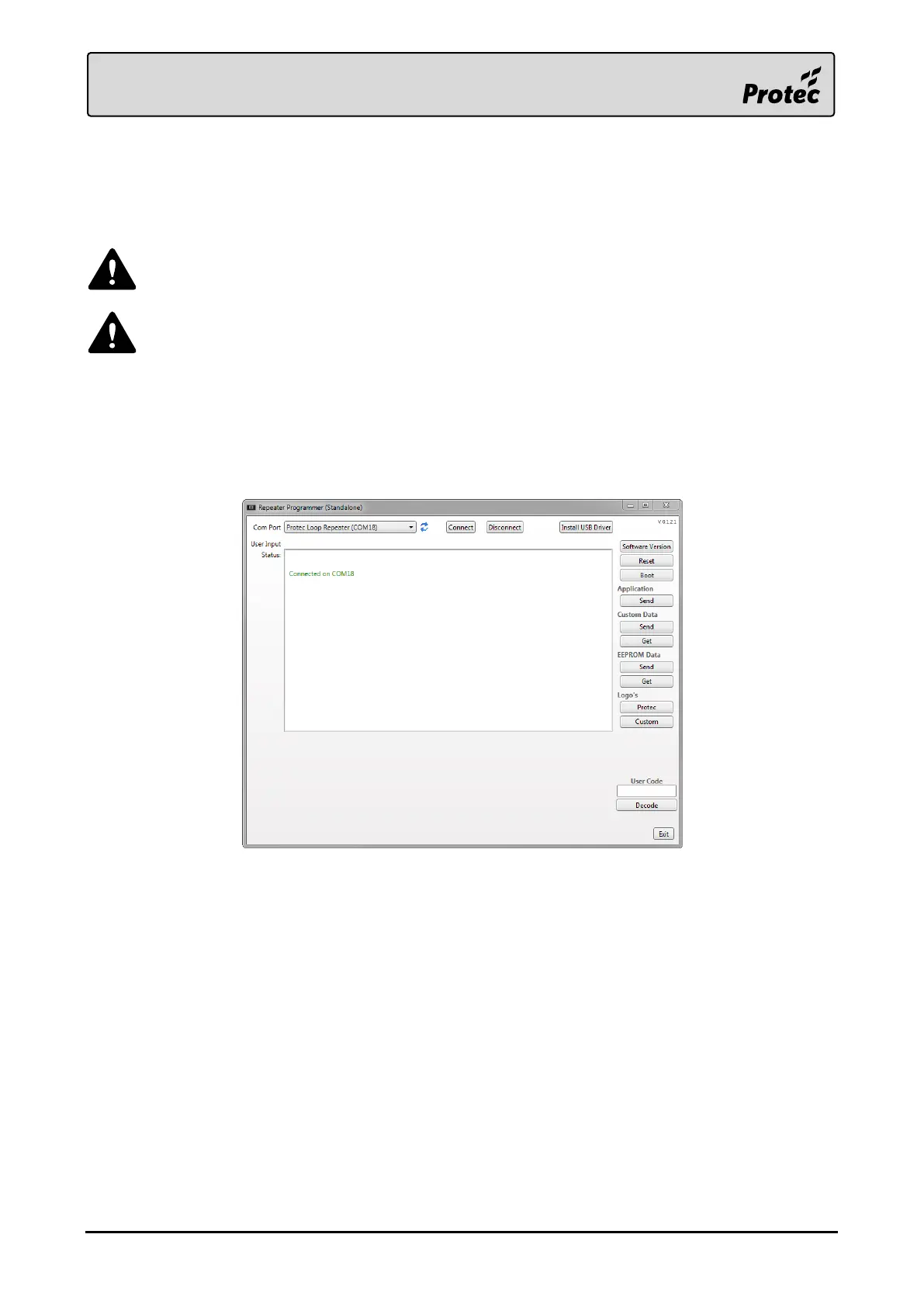 Firmware files for the device will be supplied by Protec and have the suffix ‘.ptc’.
