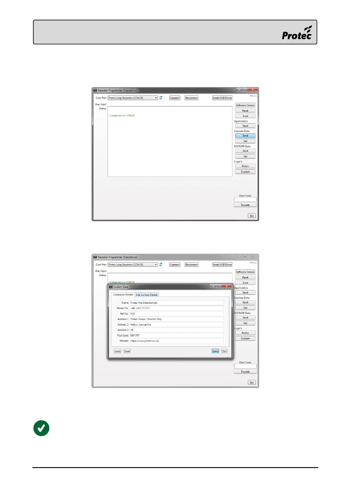 To check the current custom data stored in the device, press ‘Custom Data Get’ in the