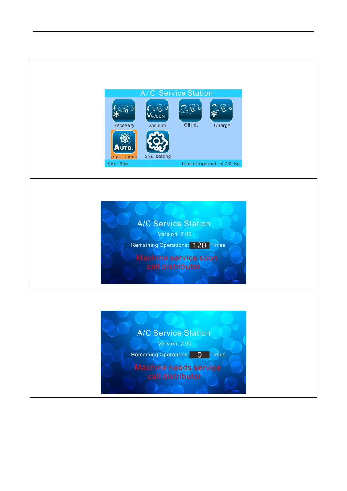 The machine permits totally 600 operations (every recovery and vacuum counts for one operation) before regular