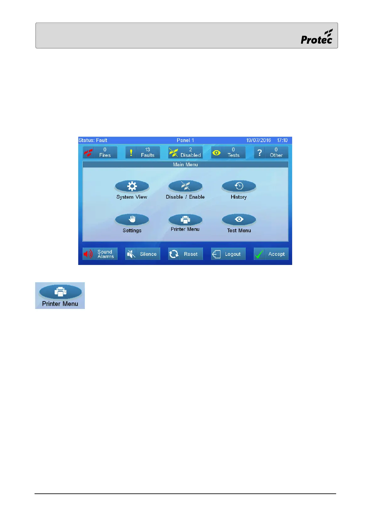 The printer menu option is only available on panels configured to have a printer