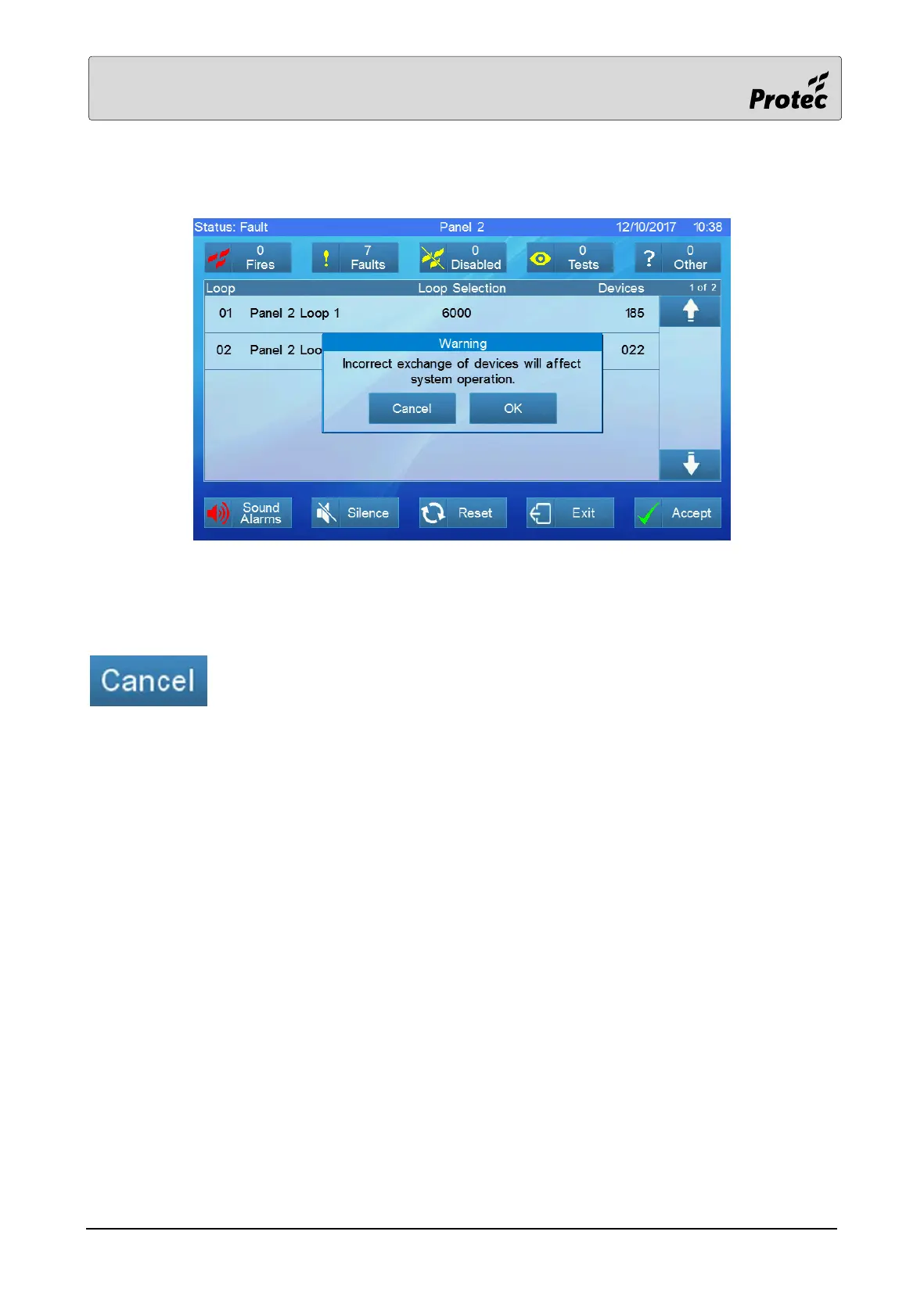 After pressing OK select a Panel (section 12.4), Loop Card (section 12.5), and Loop (section 12.6).