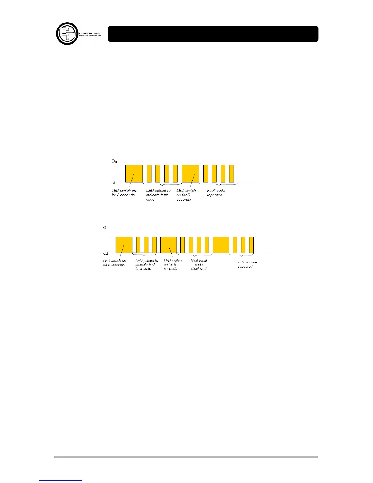 The CirrusPro can pulse the Fault LED to indicate fault code of current Faults or the last fault if there