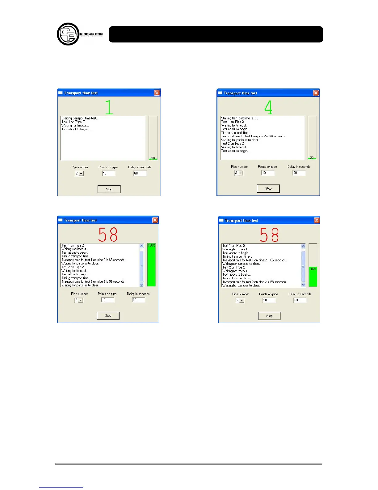 The test is complete when the particle level is returned below the alarm thresholds. The timeout delay