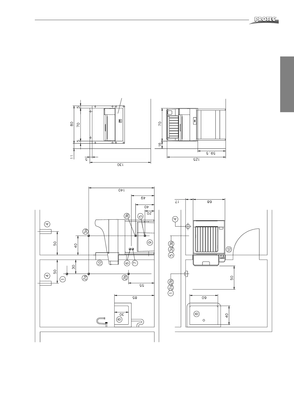If the machine is to be mounted to an existing wall break through of a PROTEC