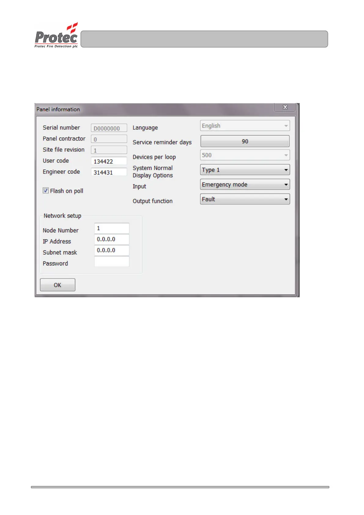entered in the User Code and Engineer Code fields of the Panel Information window.