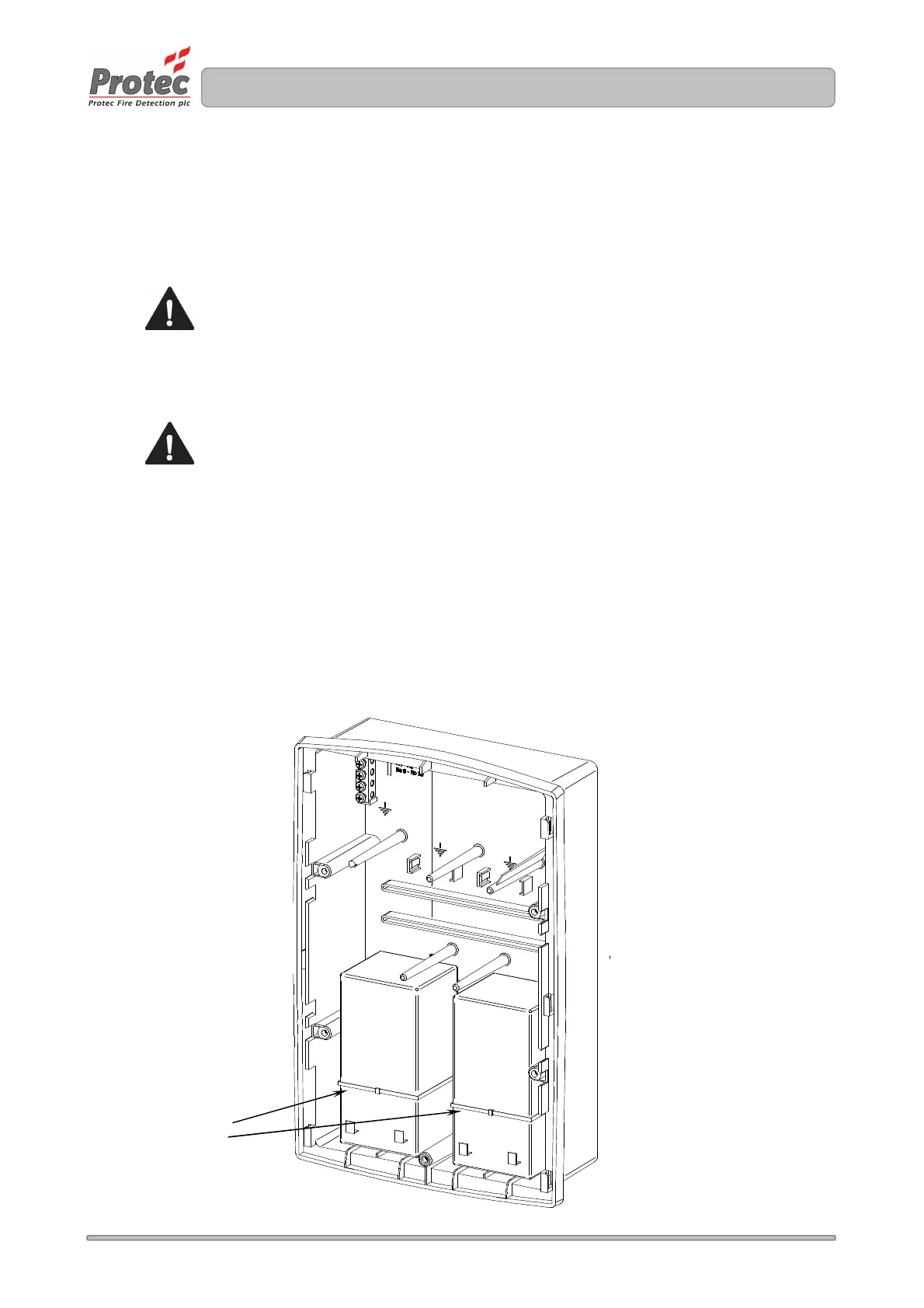 Only use batteries supplied or recommended by Protec. The internal charger has been specifically