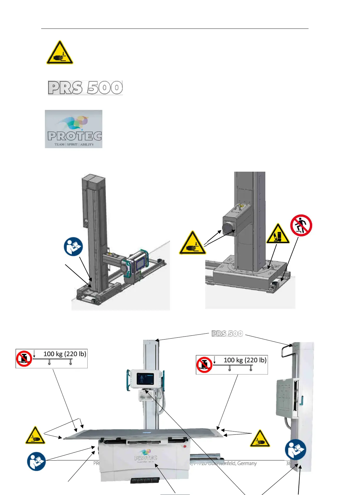 Caution: Possible pinch-/crushing hazard fort he hands and