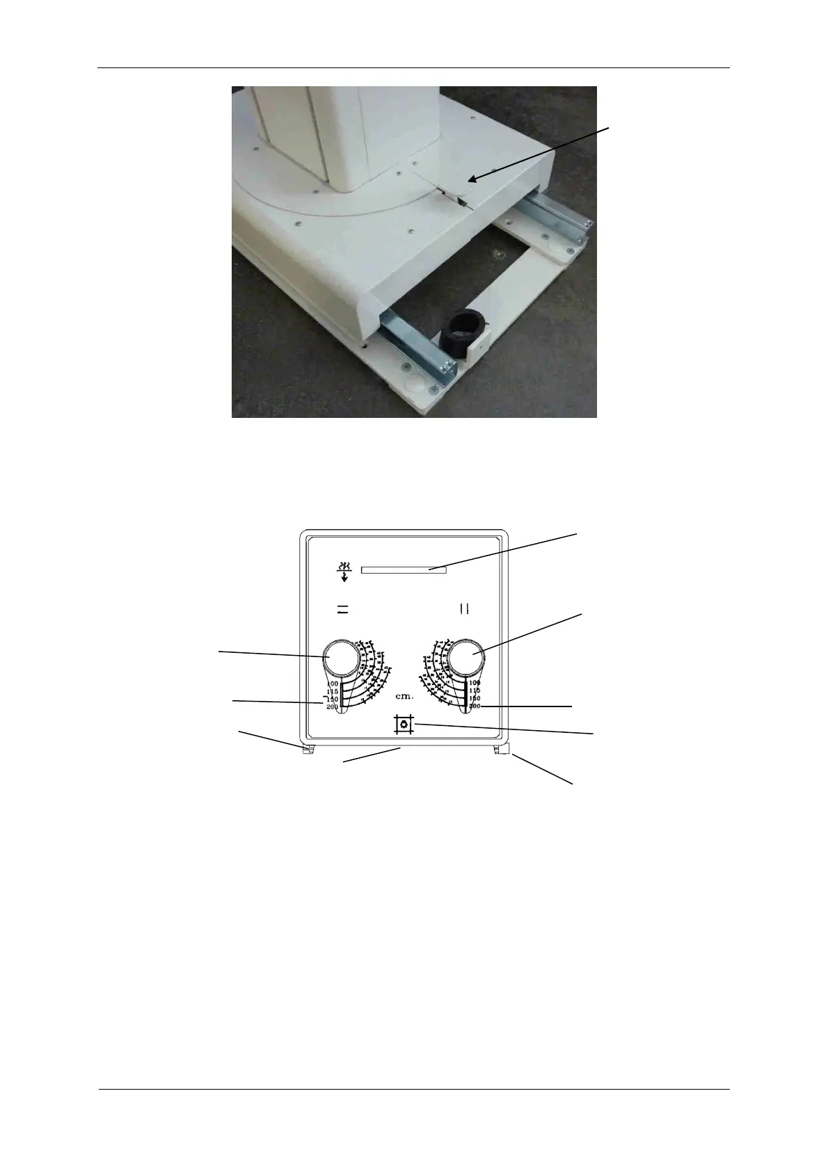 Pos. 2 -> Scales; indicate the opening of collimator shutters (transversely to table top).