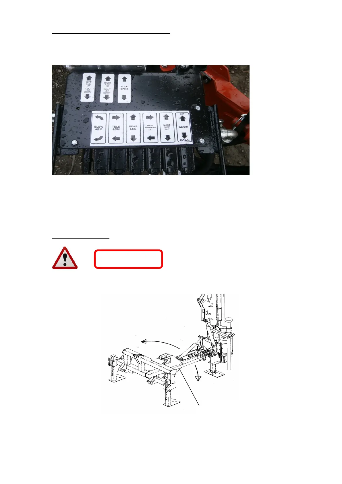 Operating the slew control lever pivots the slew arm from parallel to the main