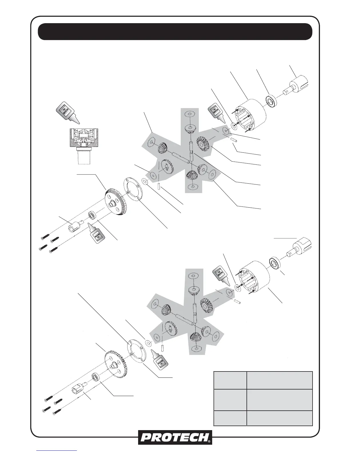 Assembly of the differentials FR & RE / Montage van het voorste en achterste differentielen /