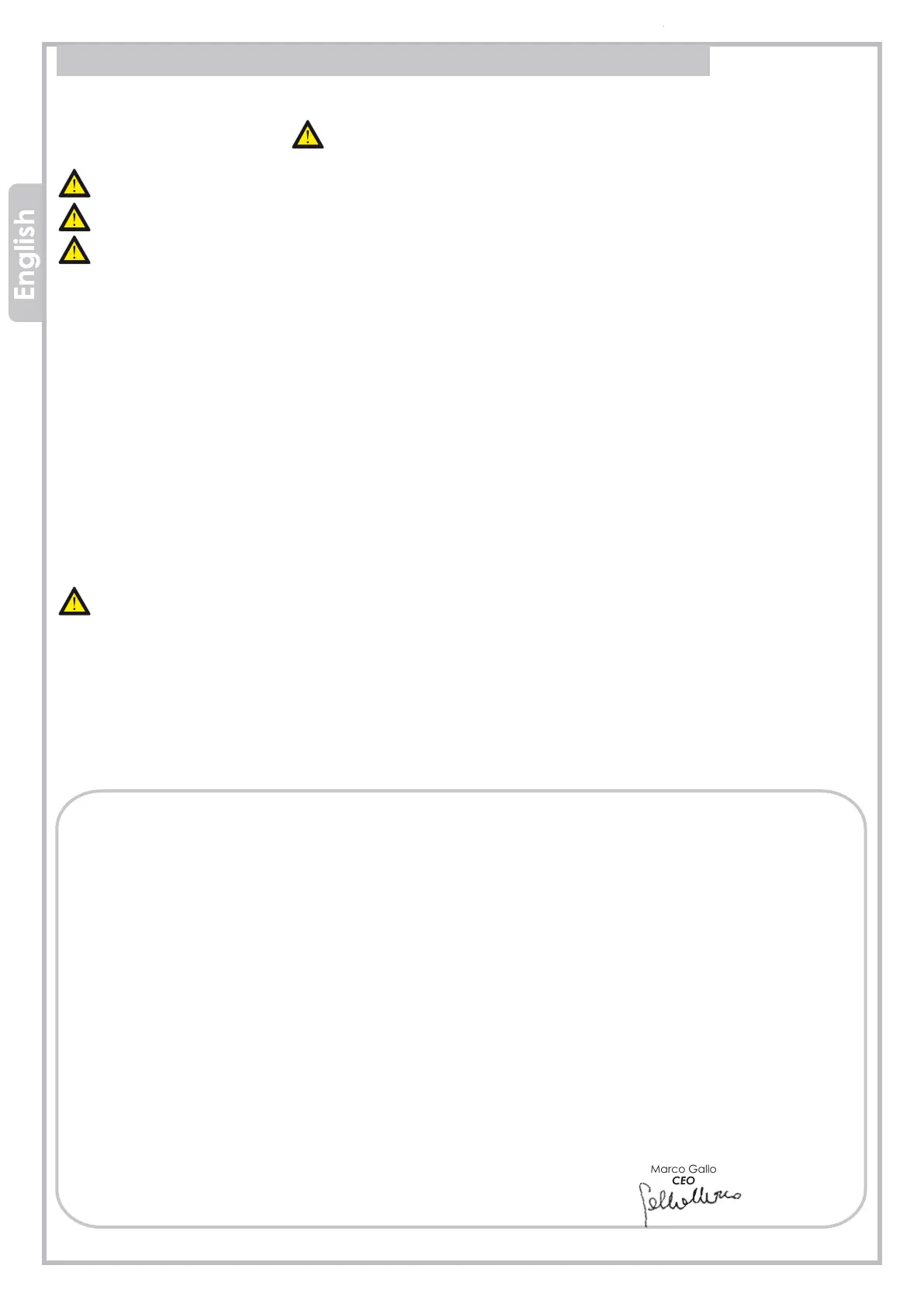 This manual contains important information concerning personal safety. An incorrect installation or an improper use may lead to