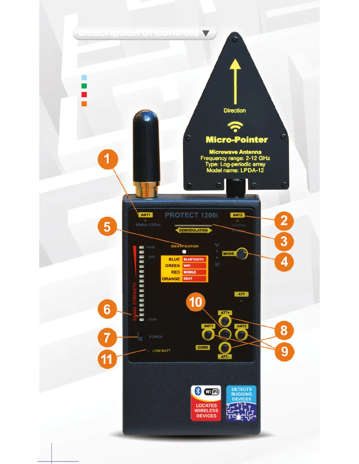 Protect 1206i - Description of Controls and Operation; Control Panel Layout; Identification LED Protocol