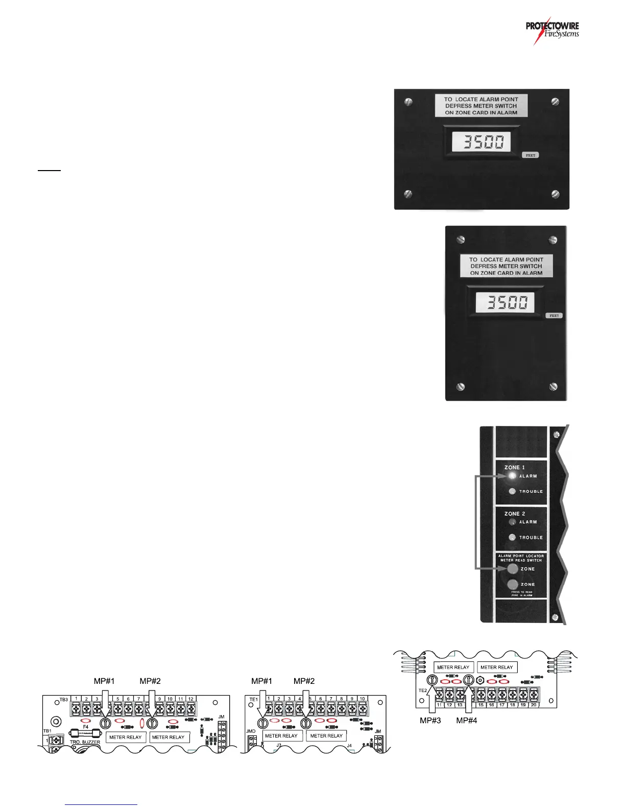 tion below) of the zone in alarm (indicated by the lighted red LED). The meter will then display
