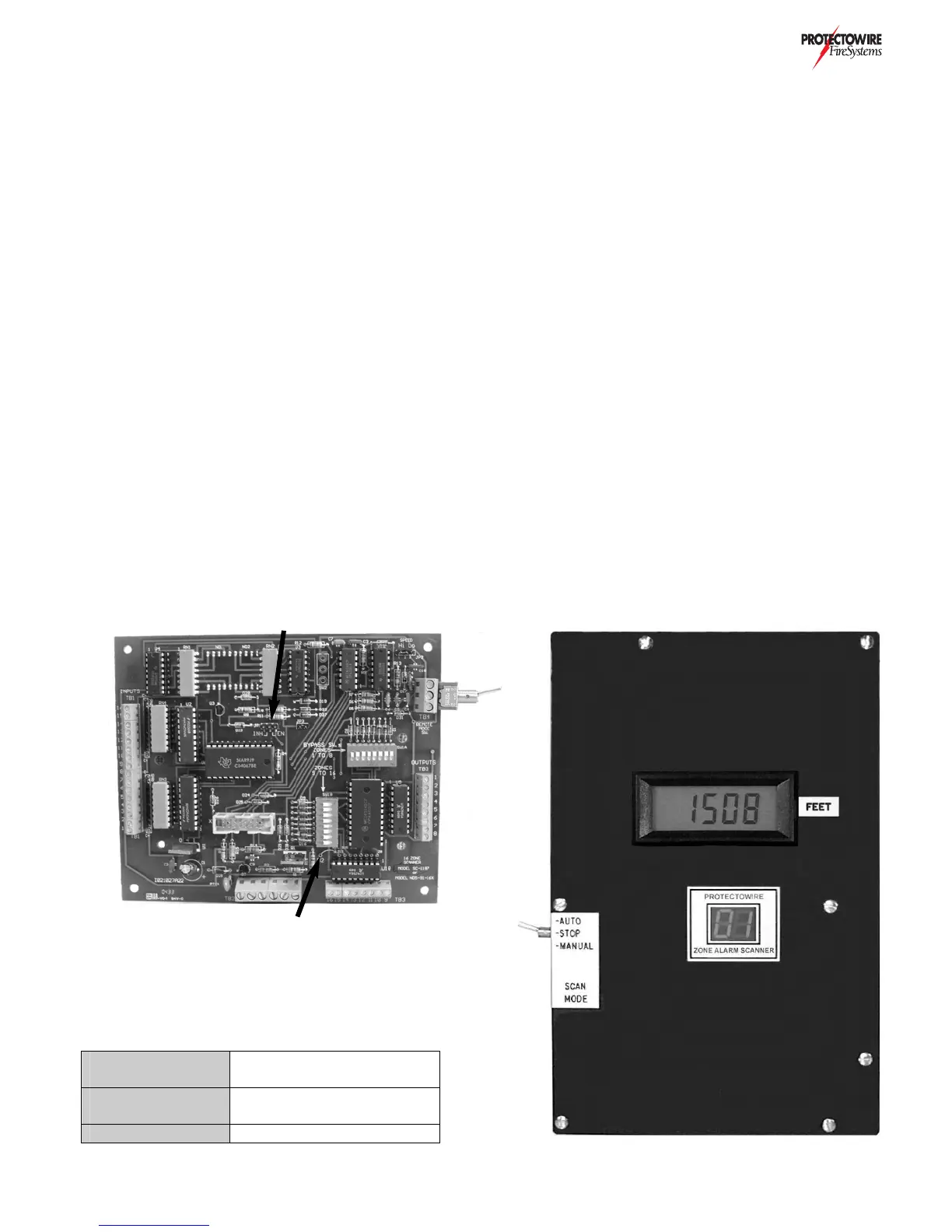 PROTECTOWIRE heat sensitive cable detection zone. In the automatic (AUTO) scan mode this device continually steps through