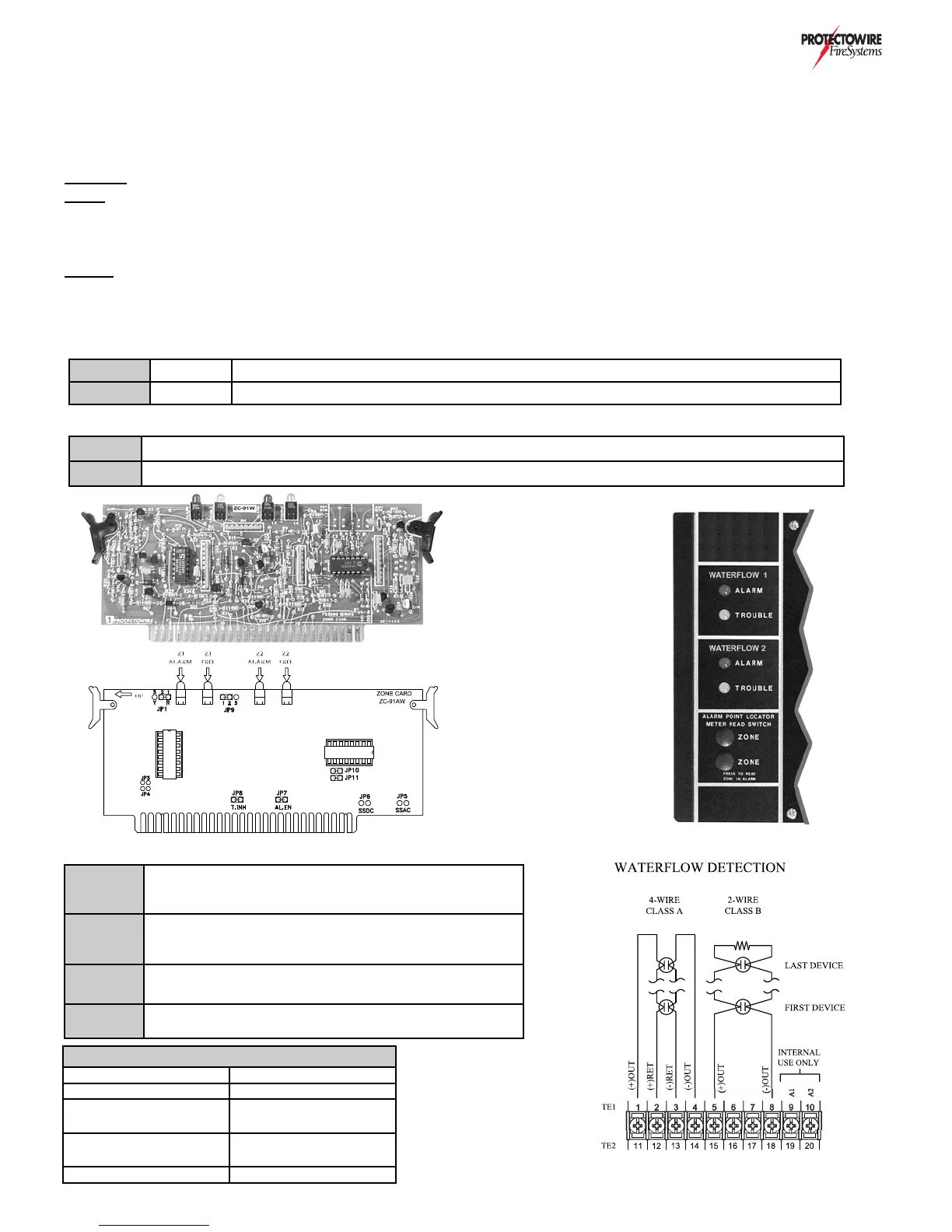 The zone card ZC-91AW provides two Class A or Class B alarm initiating device circuits for waterflow detection monitoring.