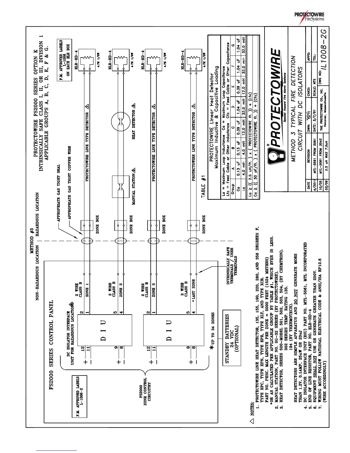 Protectowire 2000 FireSystem - K Intrinsic Safety DC Isolator Field Wiring Illustration (IL-1008-2)