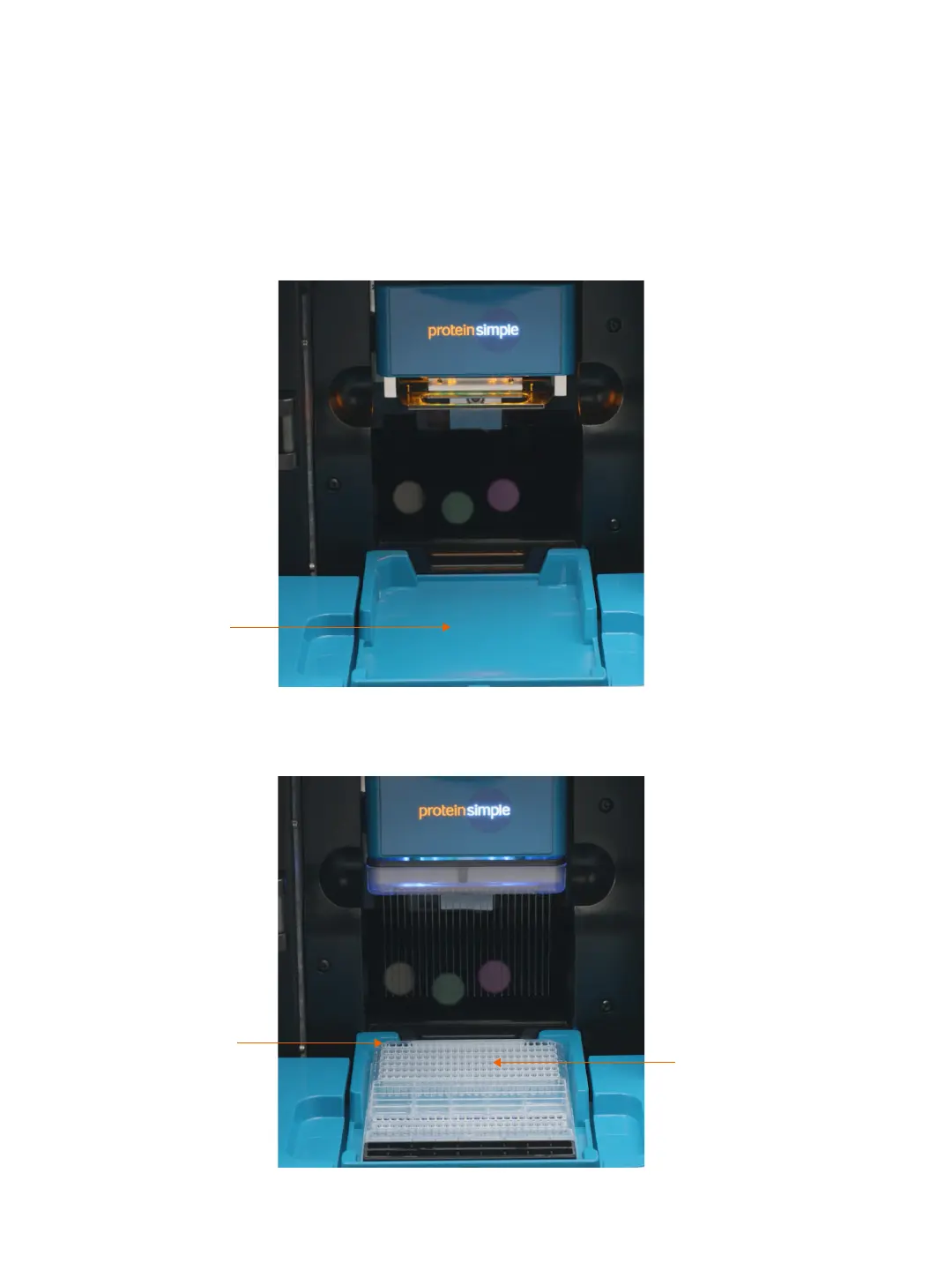 The plate holder holds the pre-filled plate which contains samples and assay reagents.