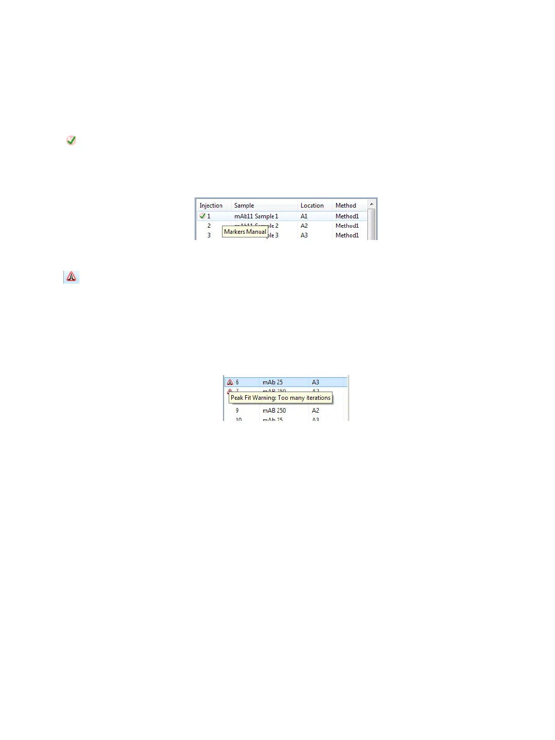 “Step 3: Checking Sample Peaks” on page 141. Roll your mouse over the icon to