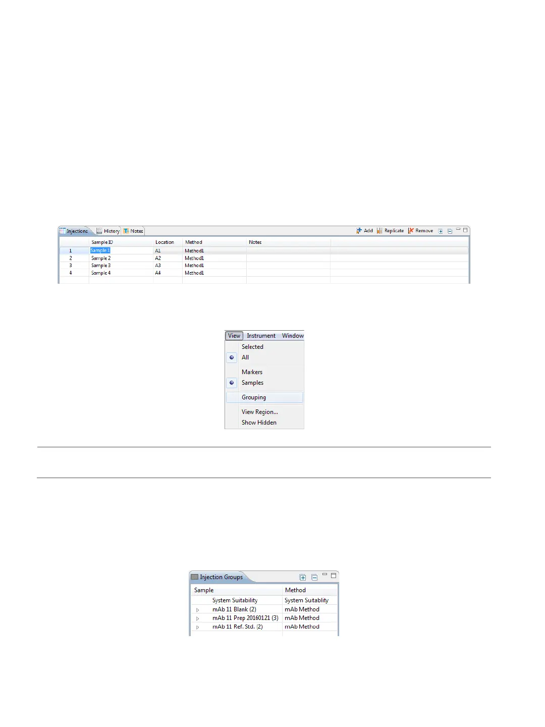 Viewing Sample Injection Groups