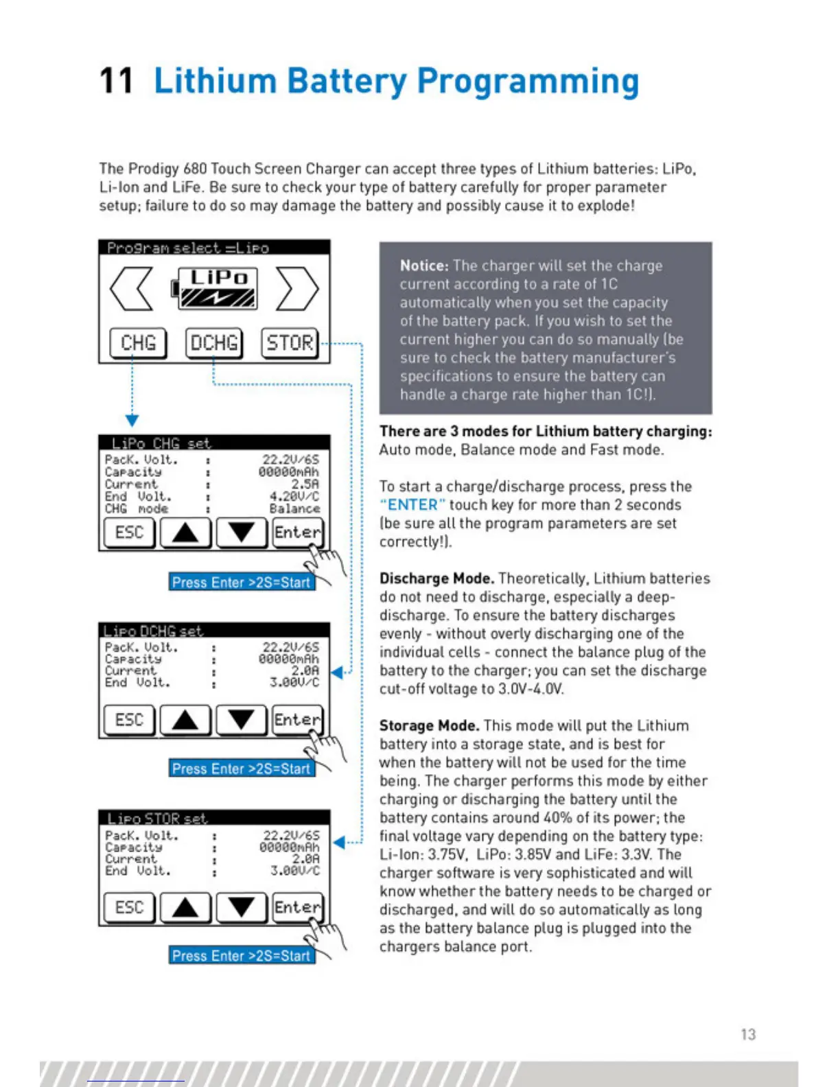 Protek RC Prodigy 680 - Lithium Battery Programming; Lithium Battery Modes
