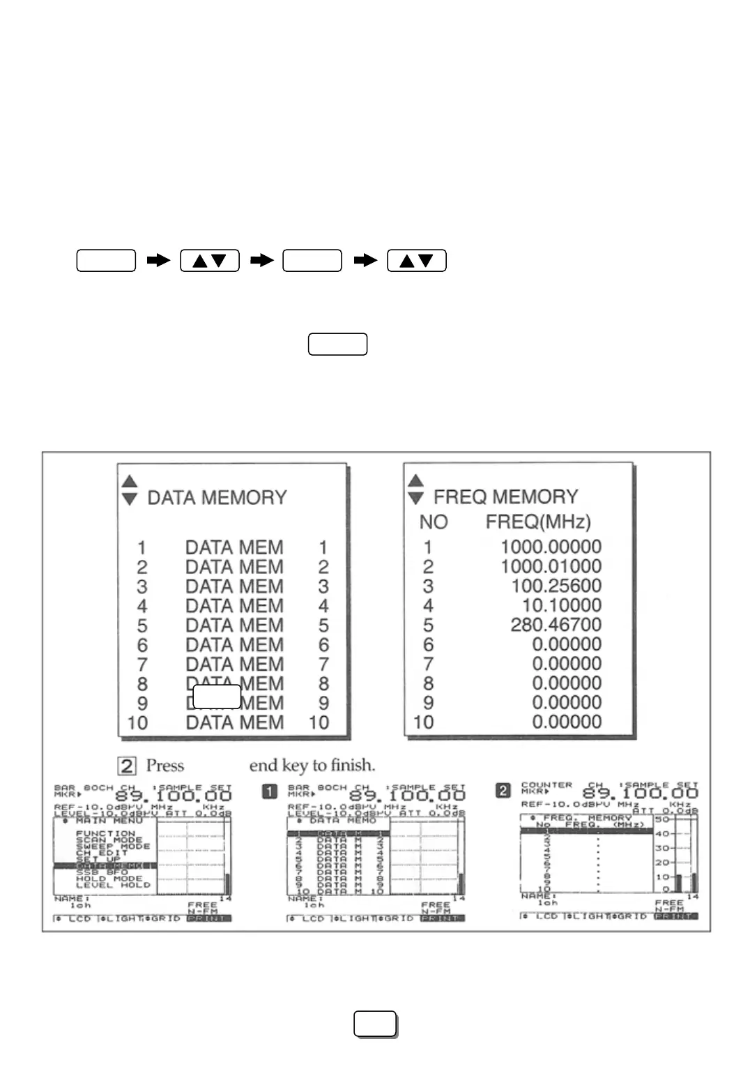 ☞ To display the Data memory menu use the following key sequence: