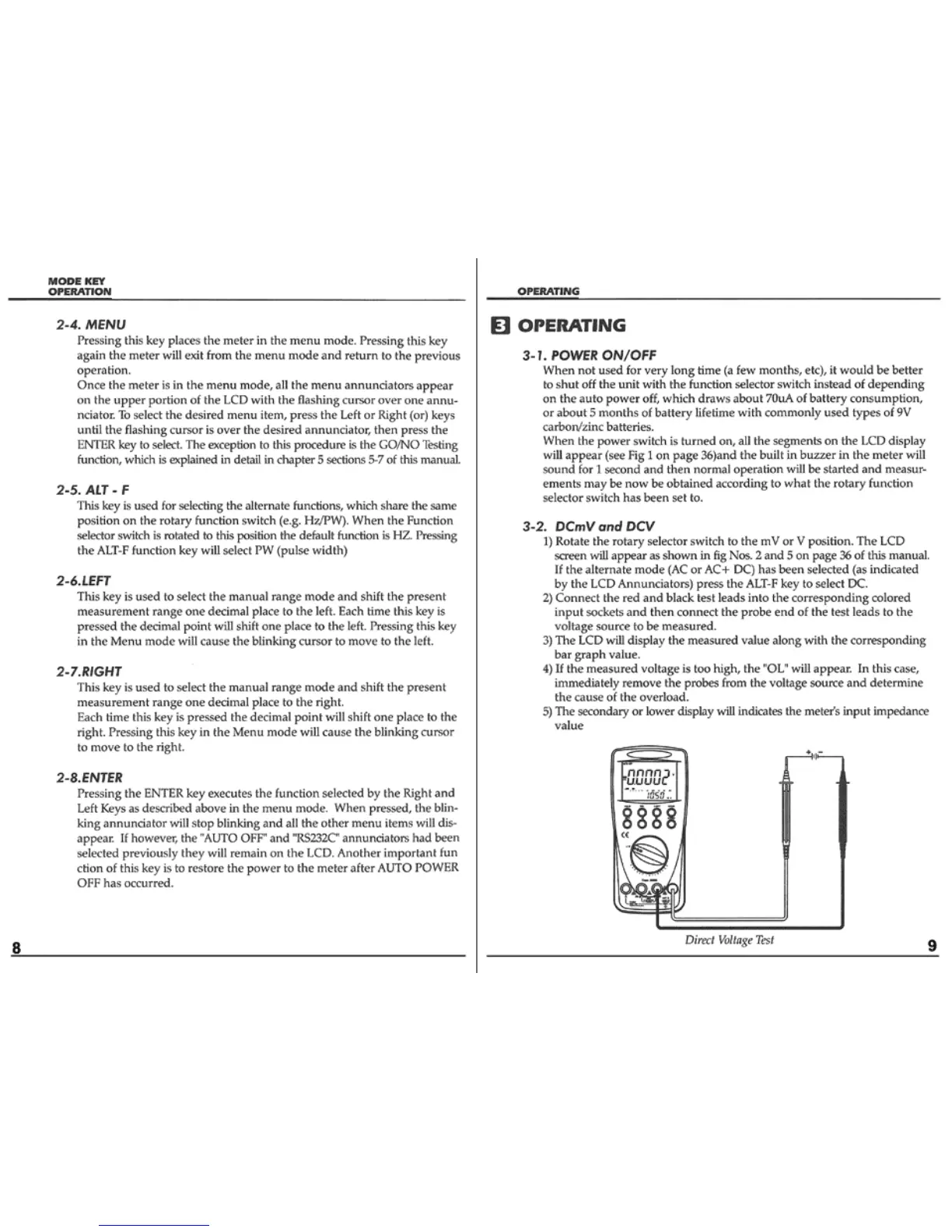 Protek 608 - Operating; Menu; Power On;Off; DCMV and DCV