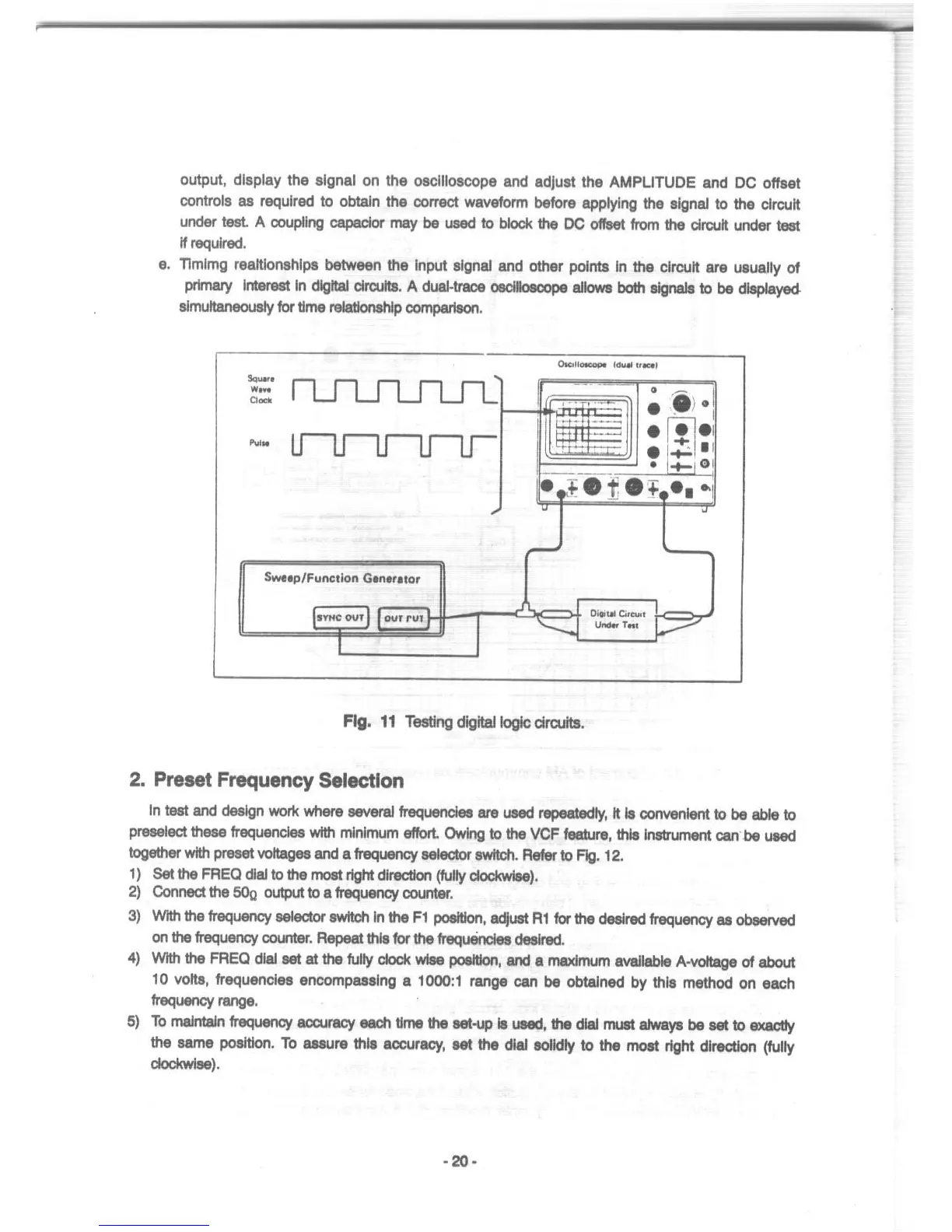 Protek 9205A - Preset Frequency Selection Method