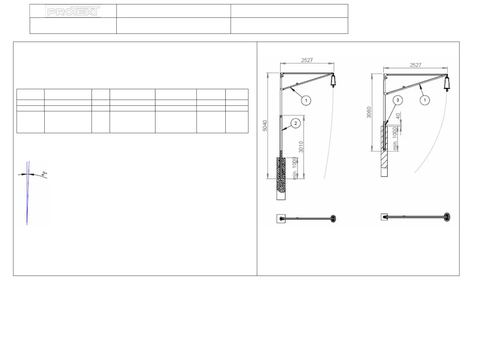 Socket mounting depth is min. 1000mm. Minimum requirements for concrete (beam) are