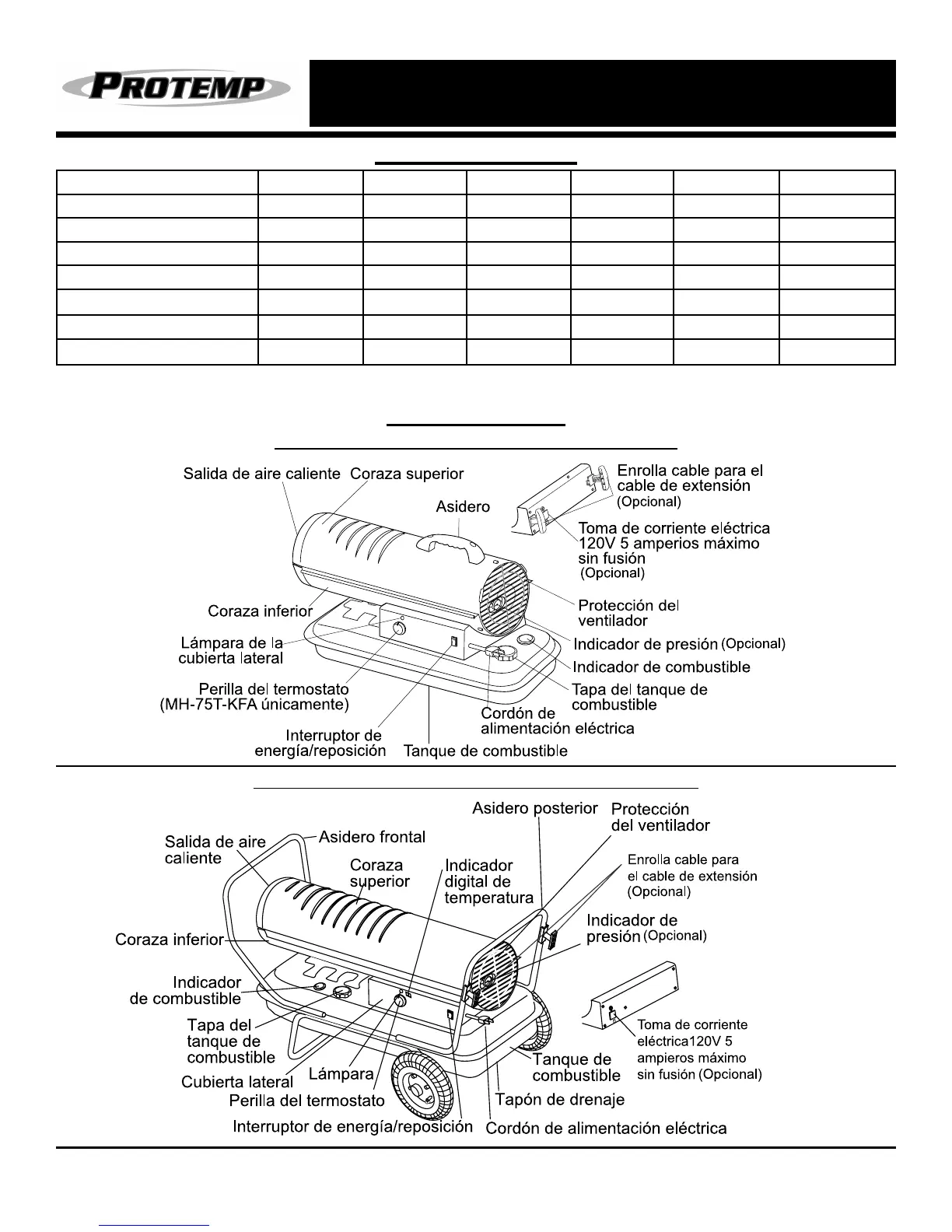 Modelo # PT-45-KFA PT-70T-KFA PT-75T-KFA