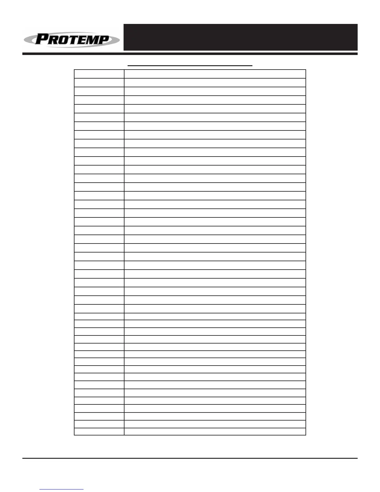 Parts List: PT-125-OFR-EU