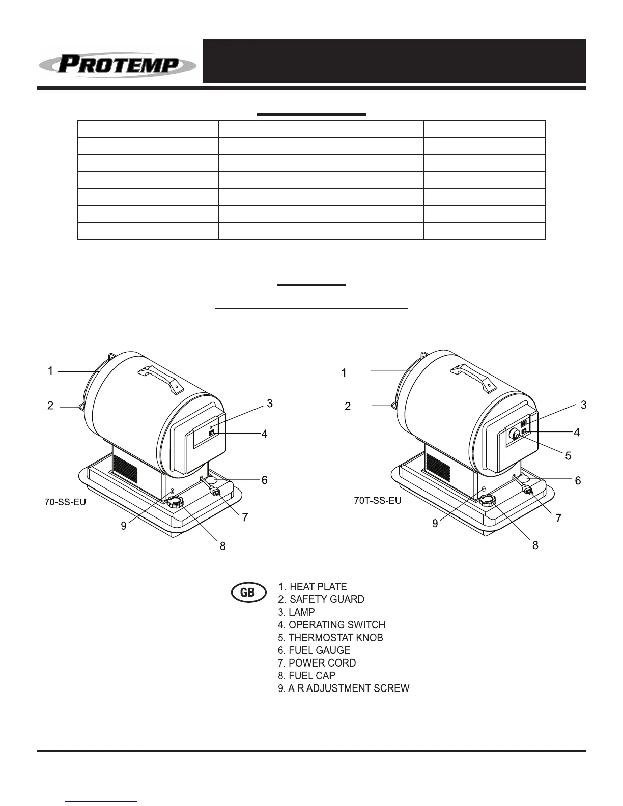 Model # PT-70-SS-EU / PT-70T-SS-EU PT-125-OFR-EU