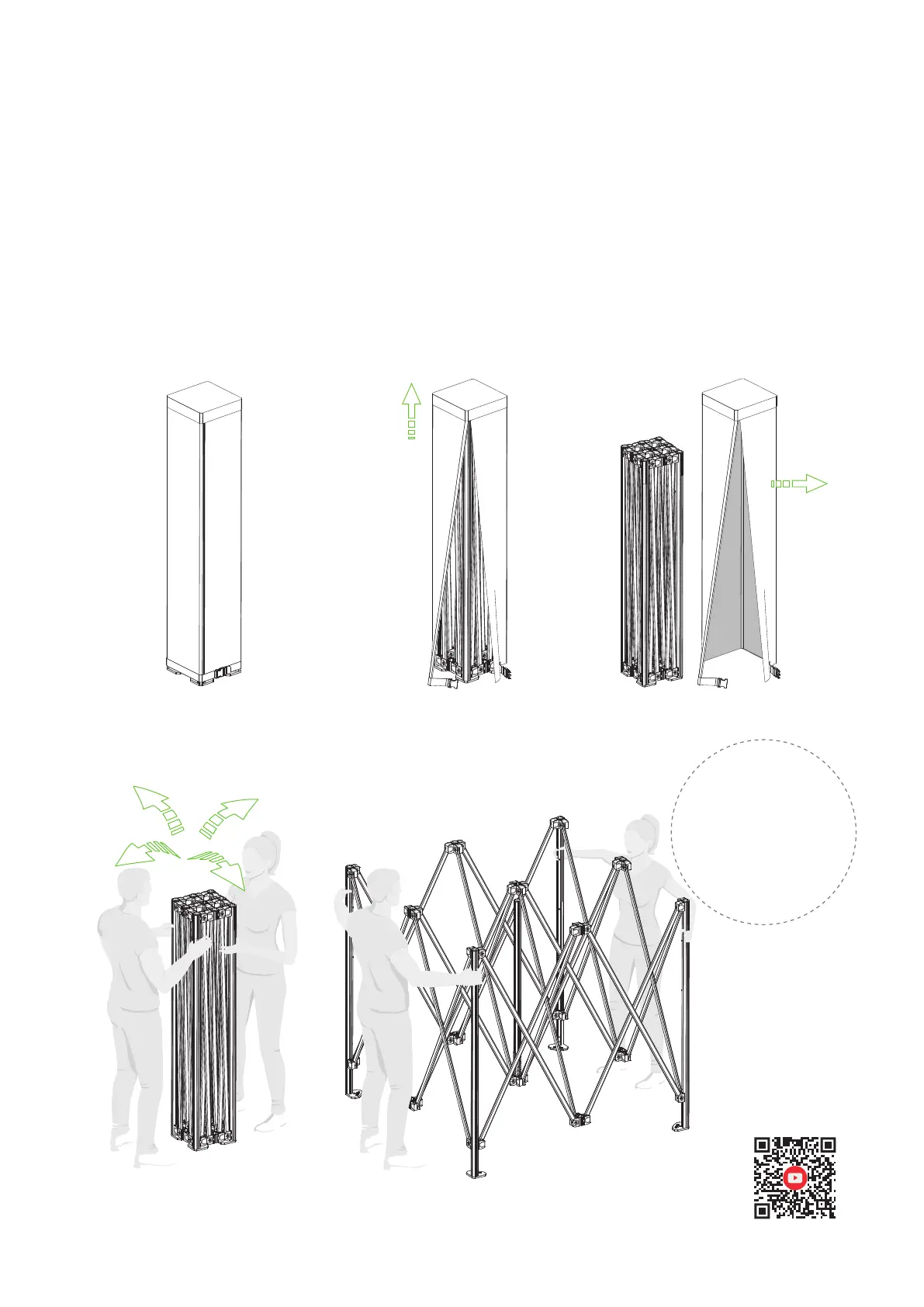 The Pro-Tent folding tent can be assembled comfortably by two people. Many steps