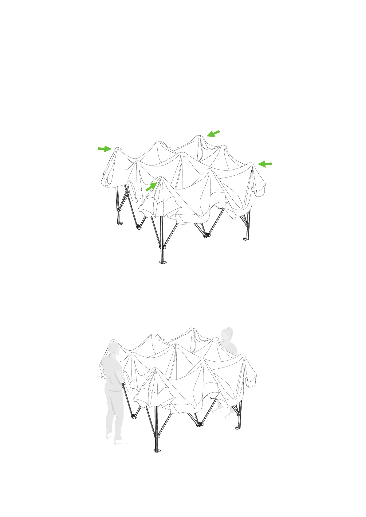 Fasten the velcro straps on the inside of the fabric roof corners