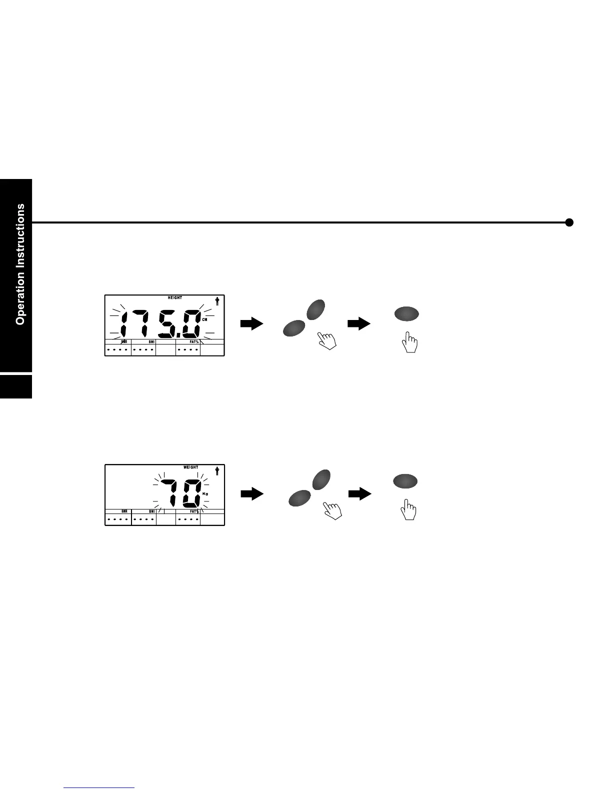 d. The preset value of weight is 70.0 Kg ( 155.0 Lb ) and glitters. Use UP and DOWN button to
