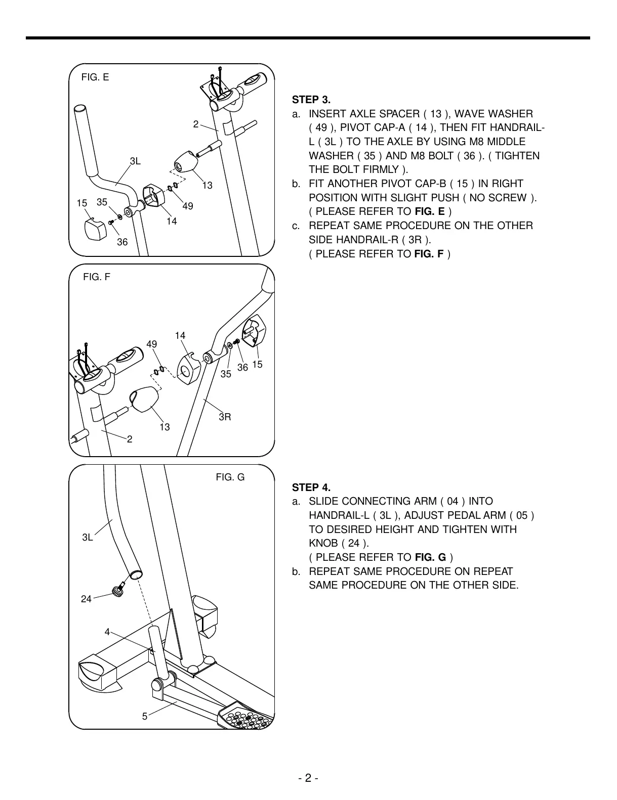 ( 49 ), PIVOT CAP-A ( 14 ), THEN FIT HANDRAIL-