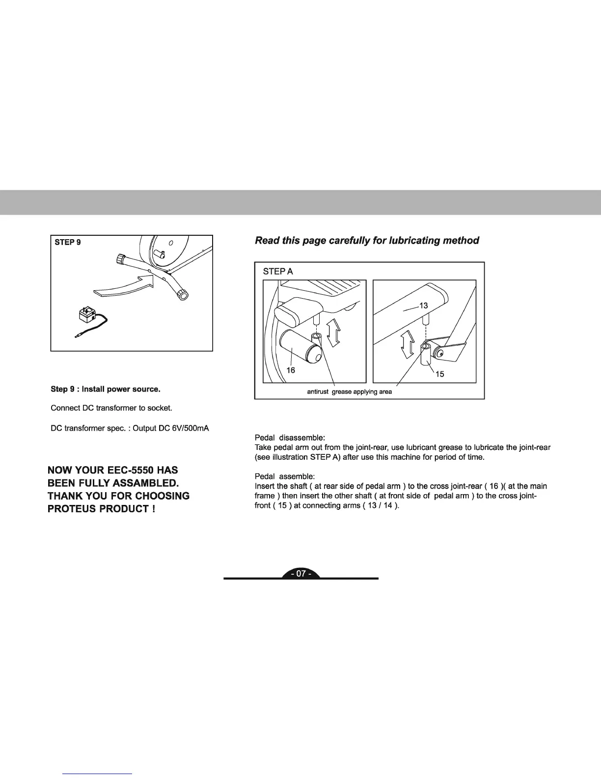 Proteus Focus EEC-5550 - Final Assembly and Lubrication; Power Source Installation; Lubrication Guide