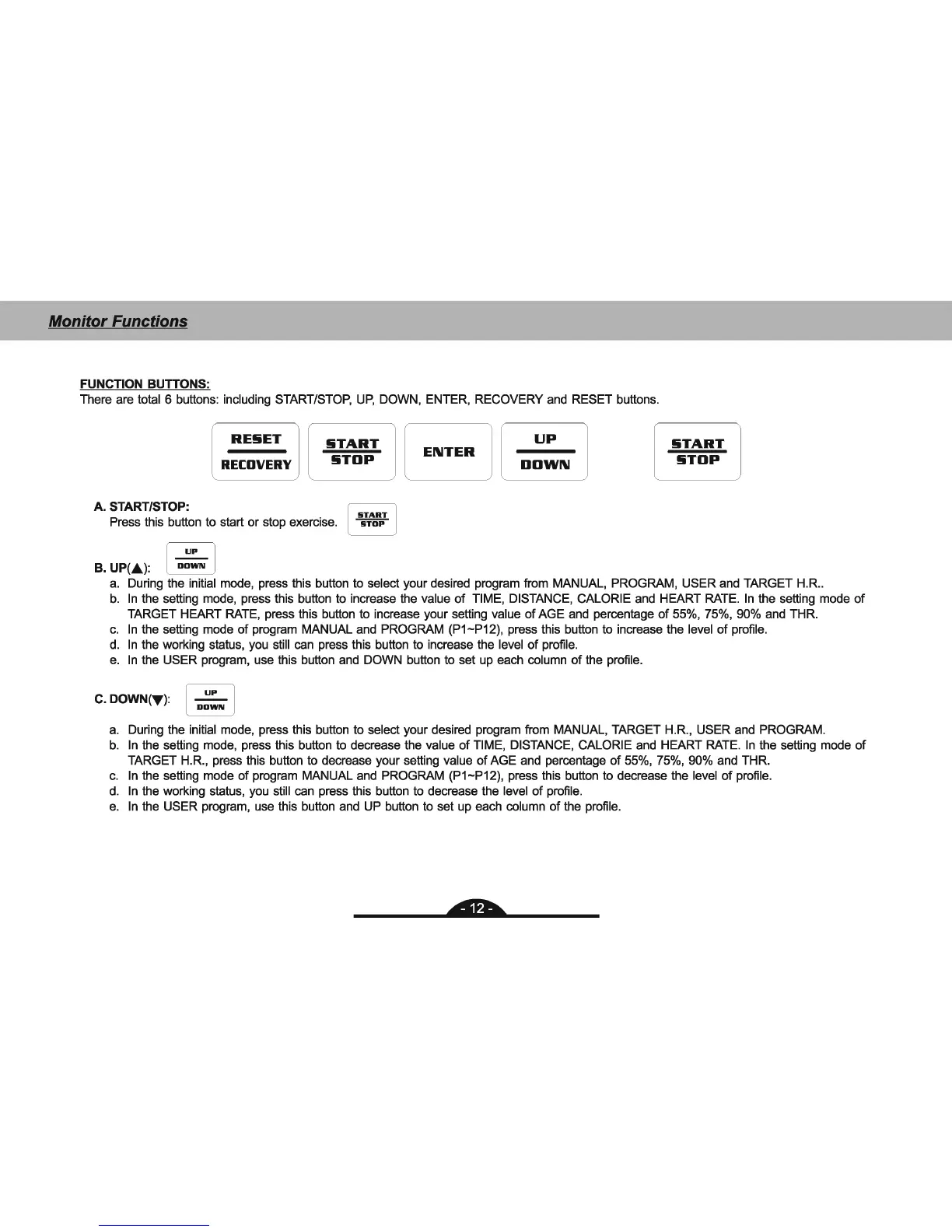 Proteus Focus EEC-5550 - Monitor User Manual: Button Operations; UP and DOWN Button Operations