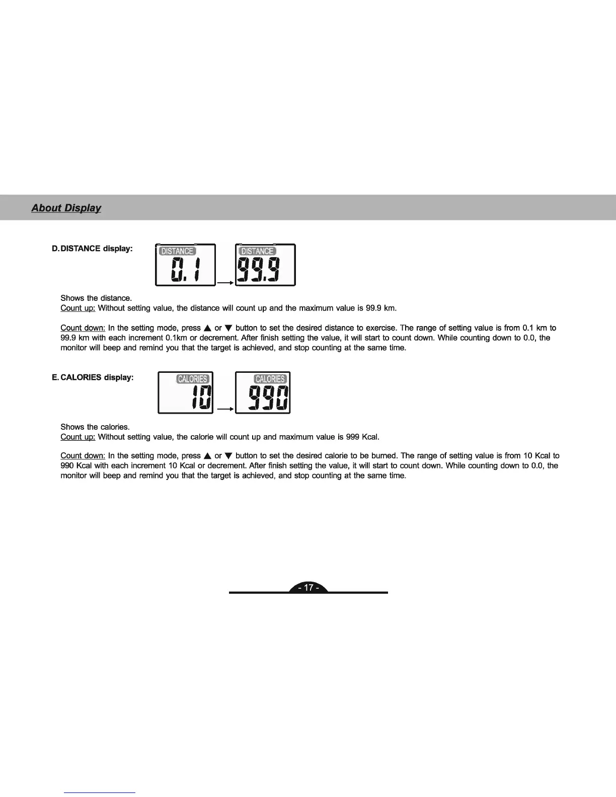 Proteus Focus EEC-5550 - Distance and Calories Displays