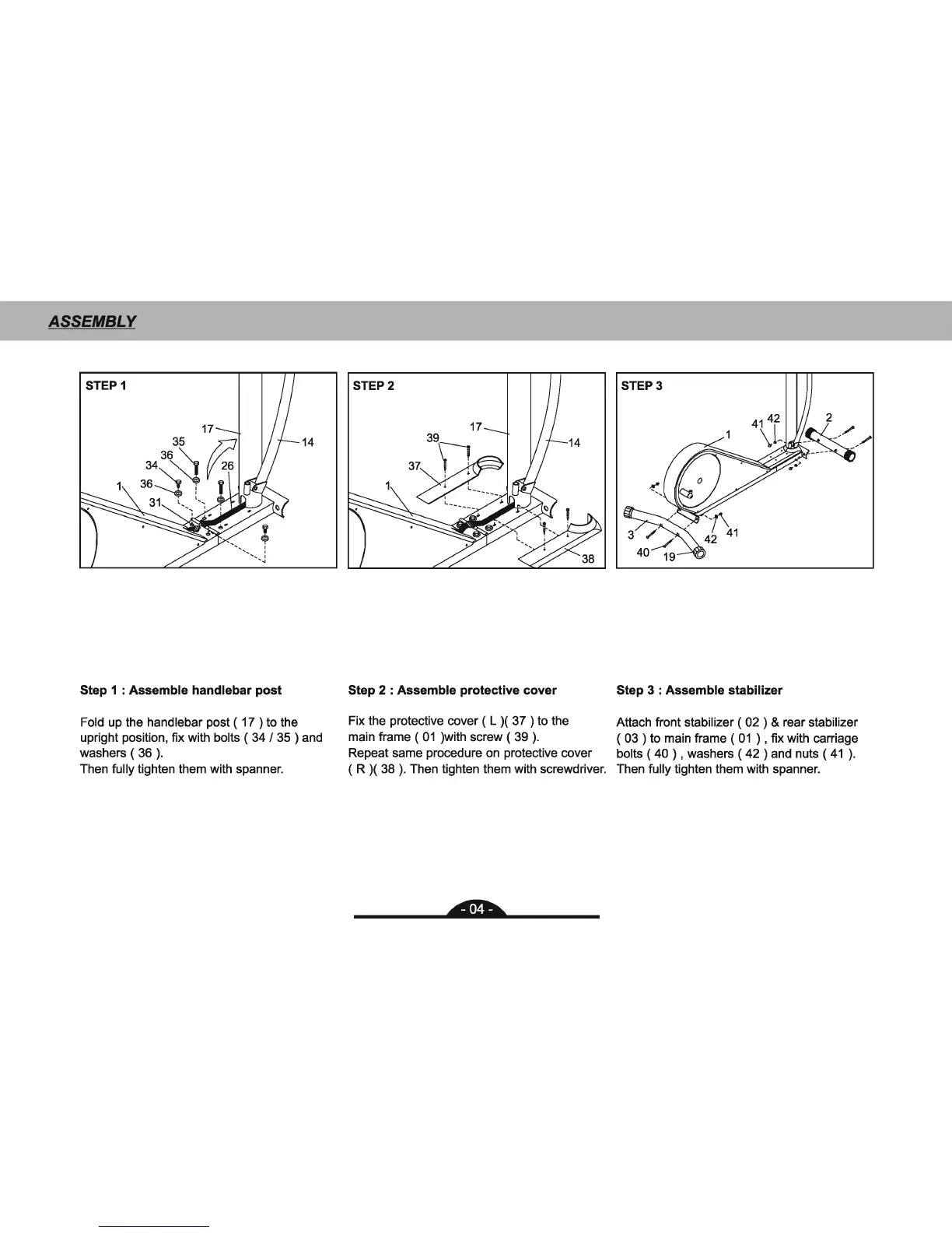 Proteus Focus EEC-5550 - Assembly Instructions: Core Components; Handlebar Post and Stabilizer Assembly