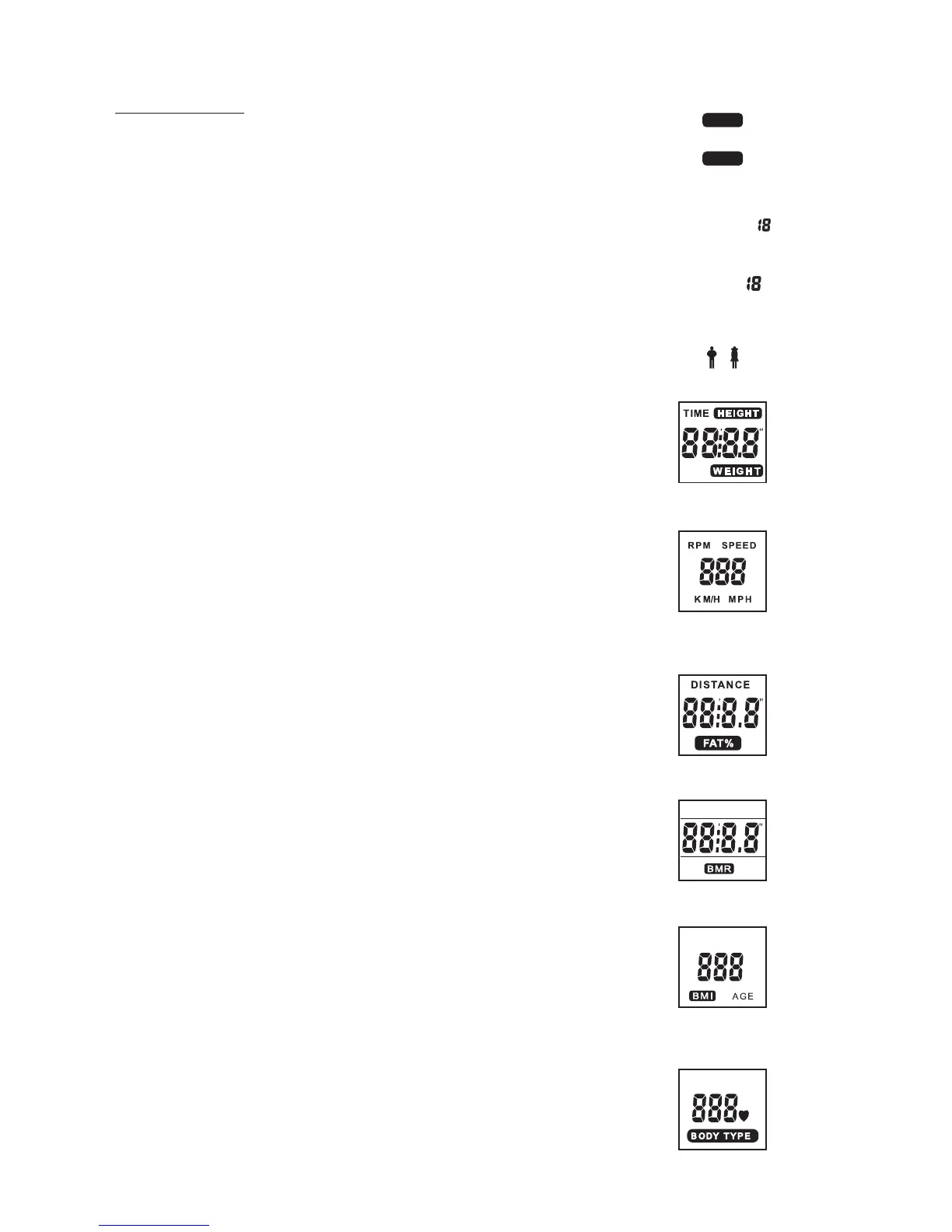 TIME, HEIGHT, OR WEIGHT DISPLAYED DEPENDING ON THE