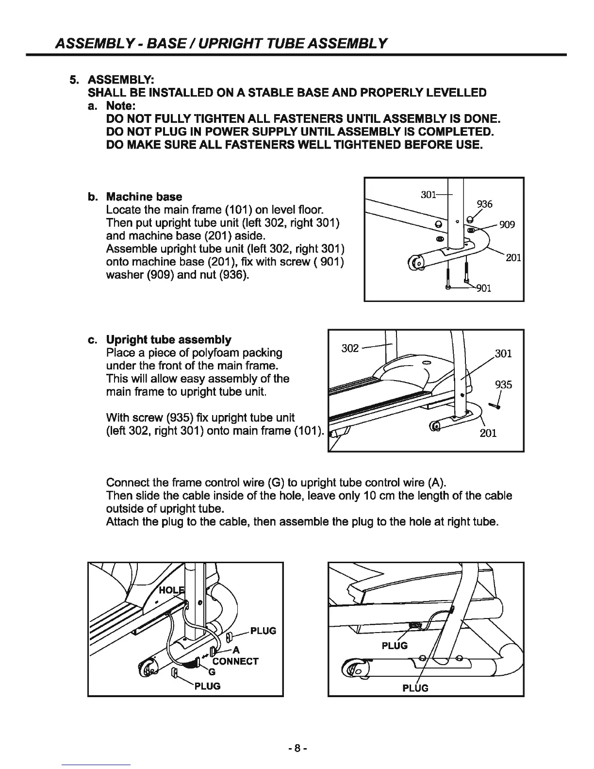 Proteus MTM-4500 - Assembly Instructions; Machine Base Assembly; Upright Tube Connection