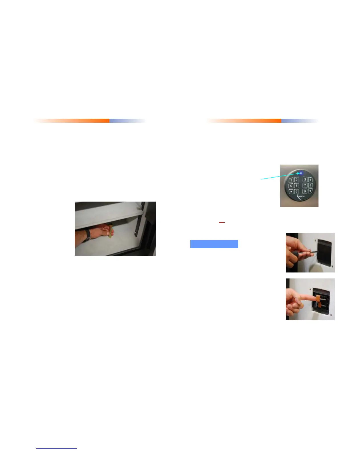 Note: The safe keeps the code in memory up to 6 months without power.