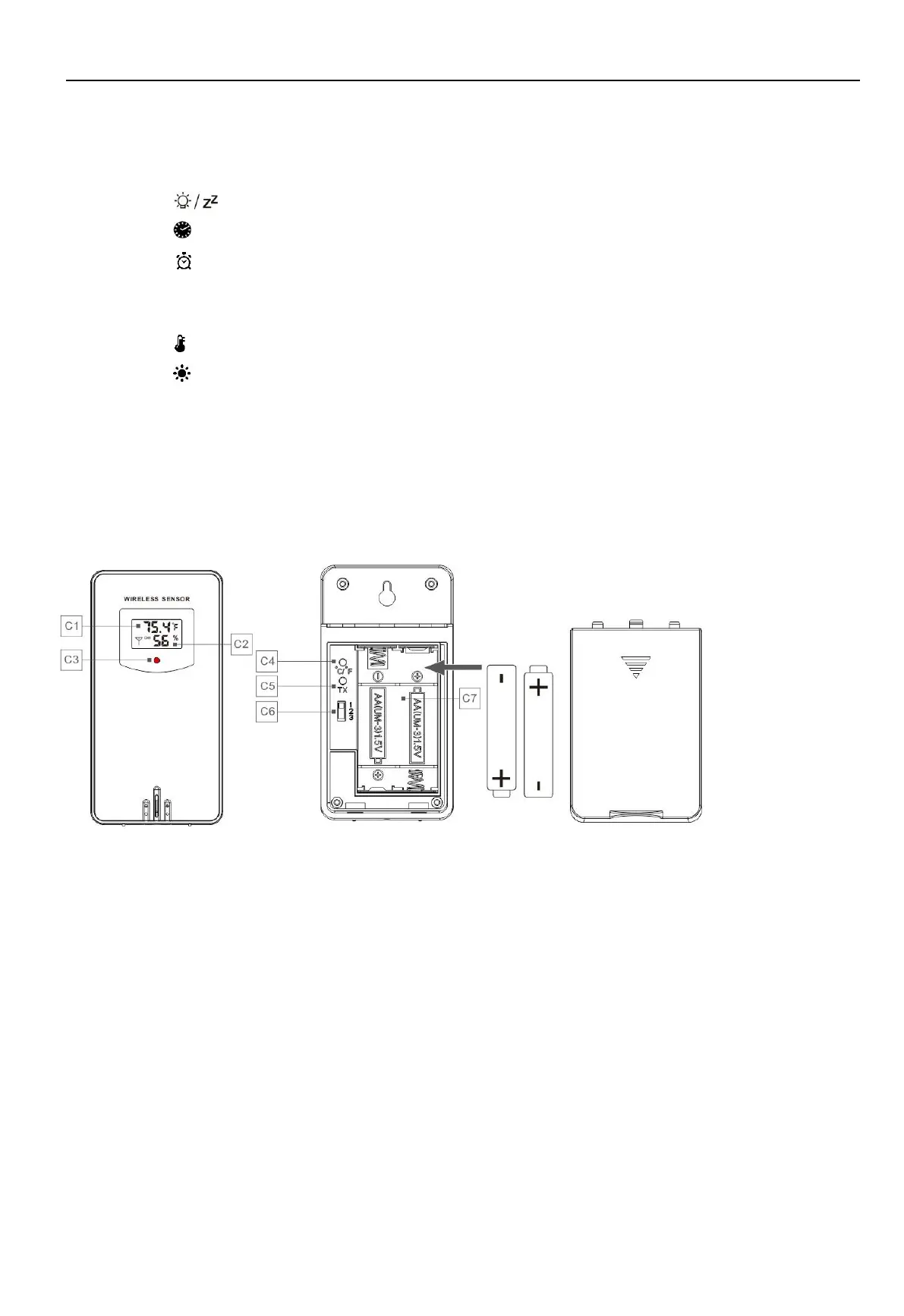 C5: “TX” button (press this button if there is no data displayed on your weather station)