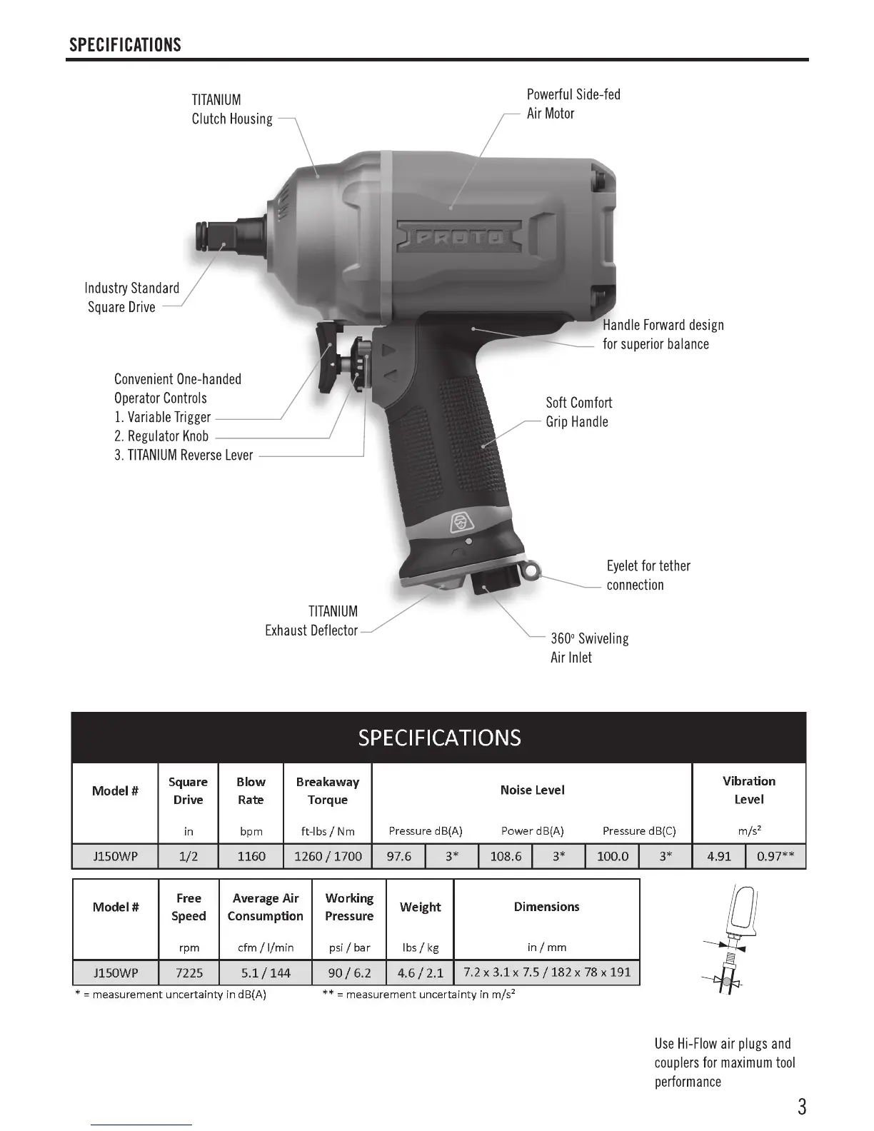 Proto J150WP - Specifications