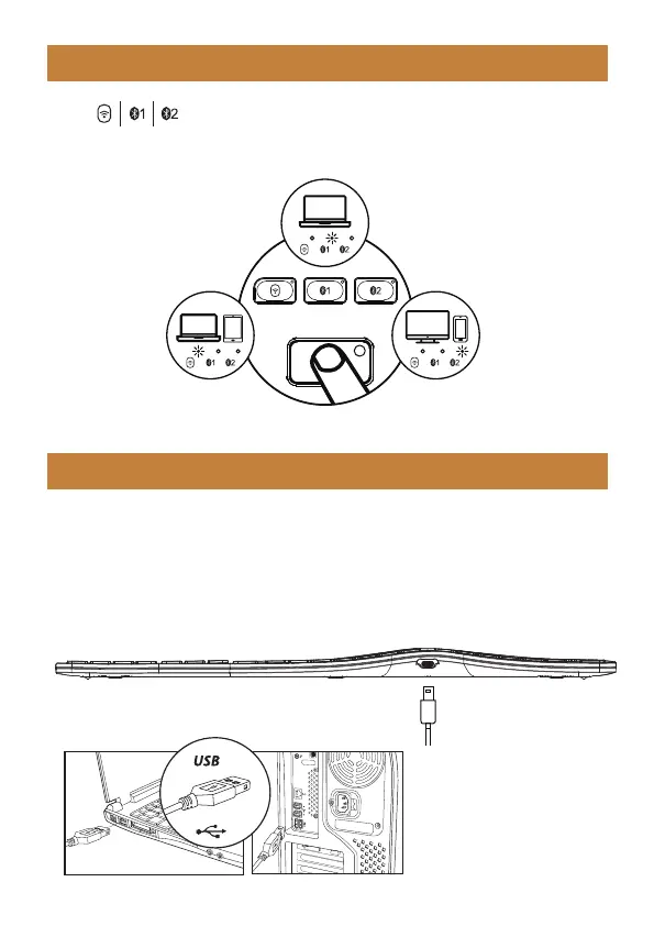 2. Insert the Type-C port into the keyboard and the USB-A port into the